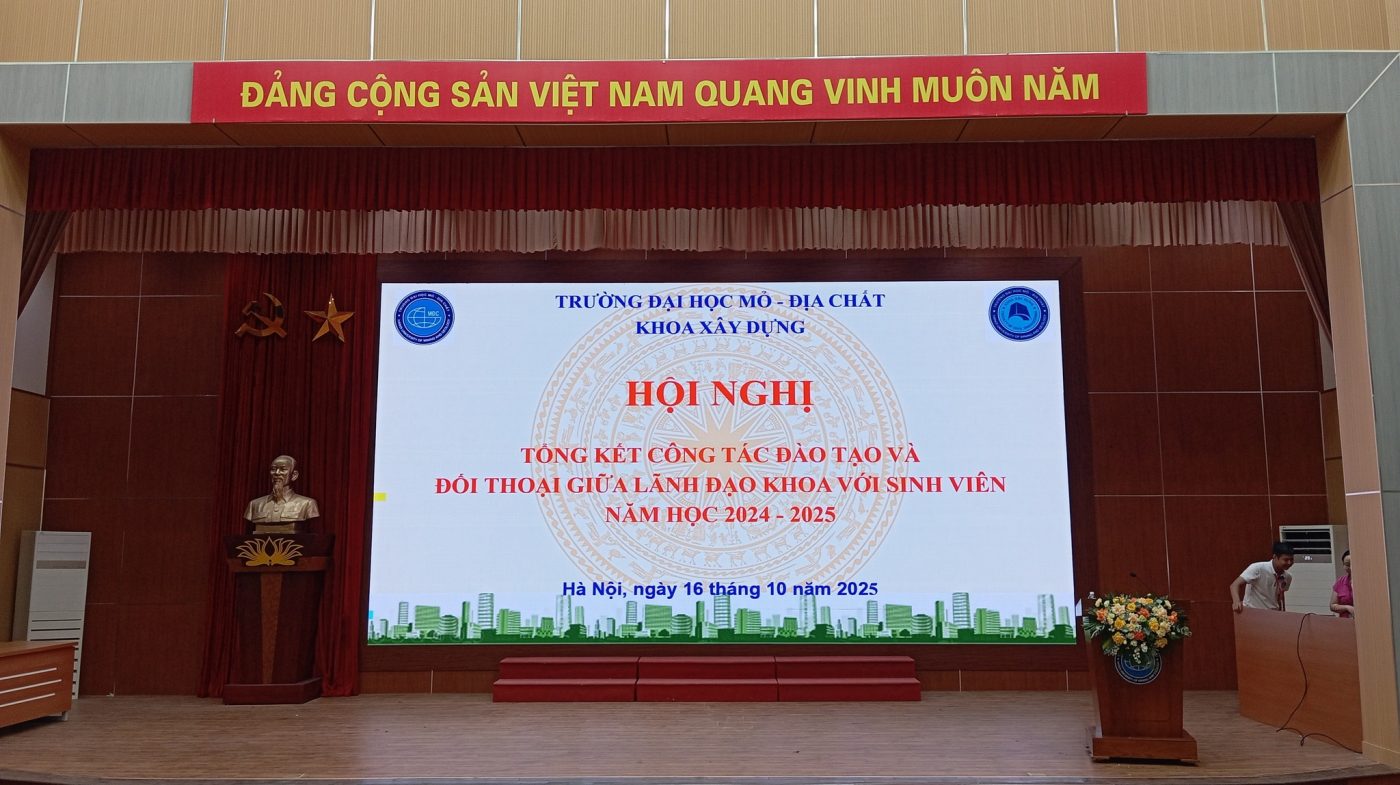 Sáng ngày 16/10/2025, Khoa Xây dựng long trọng tổ chức Hội nghị tổng kết công tác đào tạo và đối thoại giữa lãnh đạo Khoa với sinh viên năm học 2024–2025. Chương trình nhằm đánh giá những kết quả đạt được trong năm học vừa qua, đồng thời lắng nghe, tiếp thu ý kiến của sinh viên để không ngừng nâng cao chất lượng đào tạo và công tác hỗ trợ học tập.