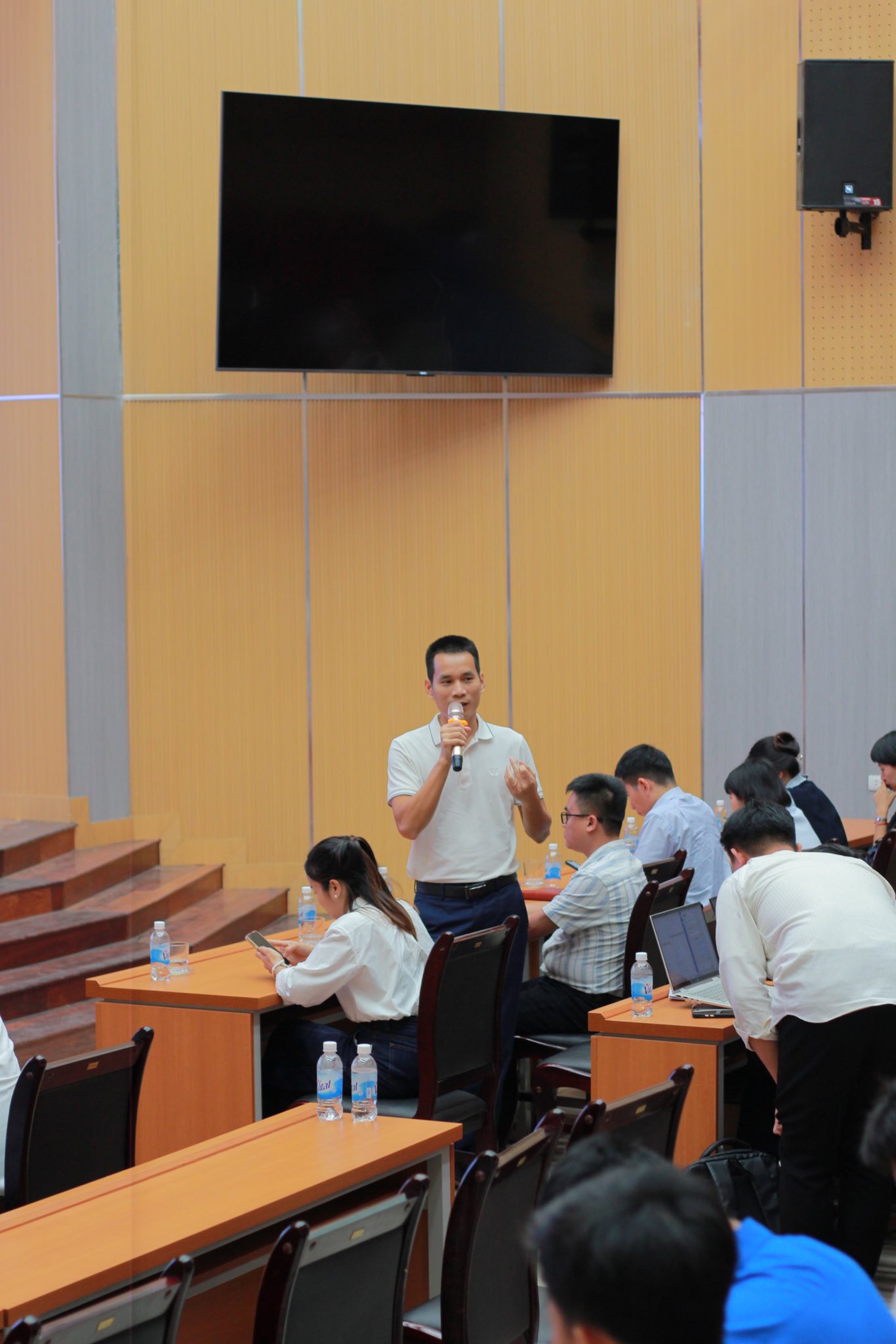 📊 Tại Hội nghị, PGS. TS Trần Tuấn Minh – Phó trưởng Khoa Xây dựng đã báo cáo tổng kết và chỉ ra những kết quả nổi bật trong công tác đào tạo, rèn luyện, nghiên cứu khoa học và hoạt động phong trào sinh viên. Nhiều ý kiến đóng góp, kiến nghị của sinh viên được lãnh đạo Khoa và đại diện Phòng ban Nhà trường giải đáp thẳng thắn, thể hiện tinh thần cởi mở, trách nhiệm và cầu thị trong công tác giáo dục.